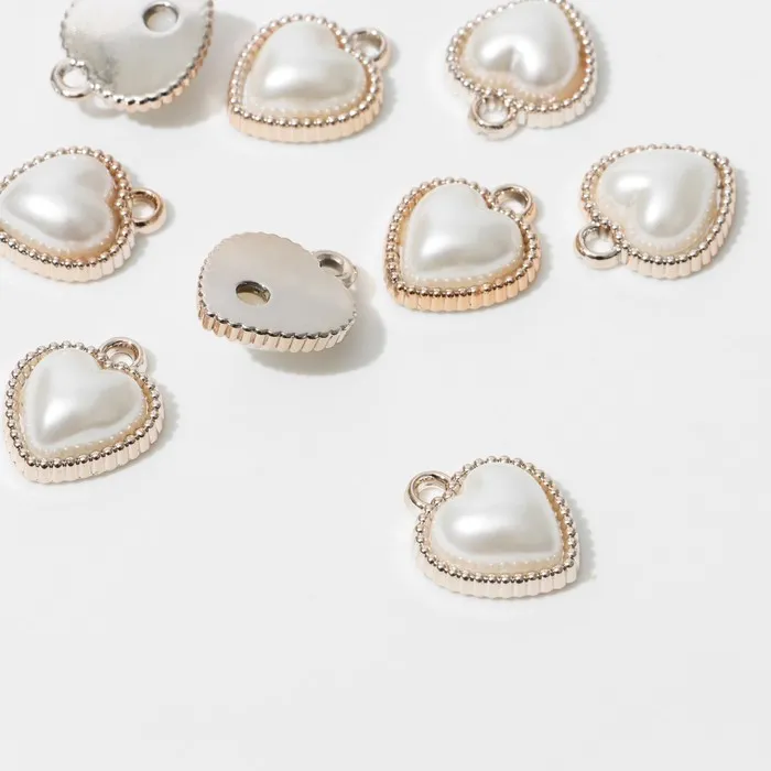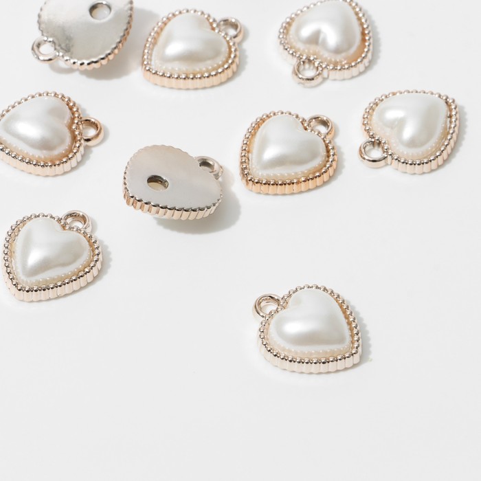 Подвеска «Жемчуг» сердце 1,9×1,6×0,7см, (набор 10 шт.), цвет белый в золоте — Характеристики
