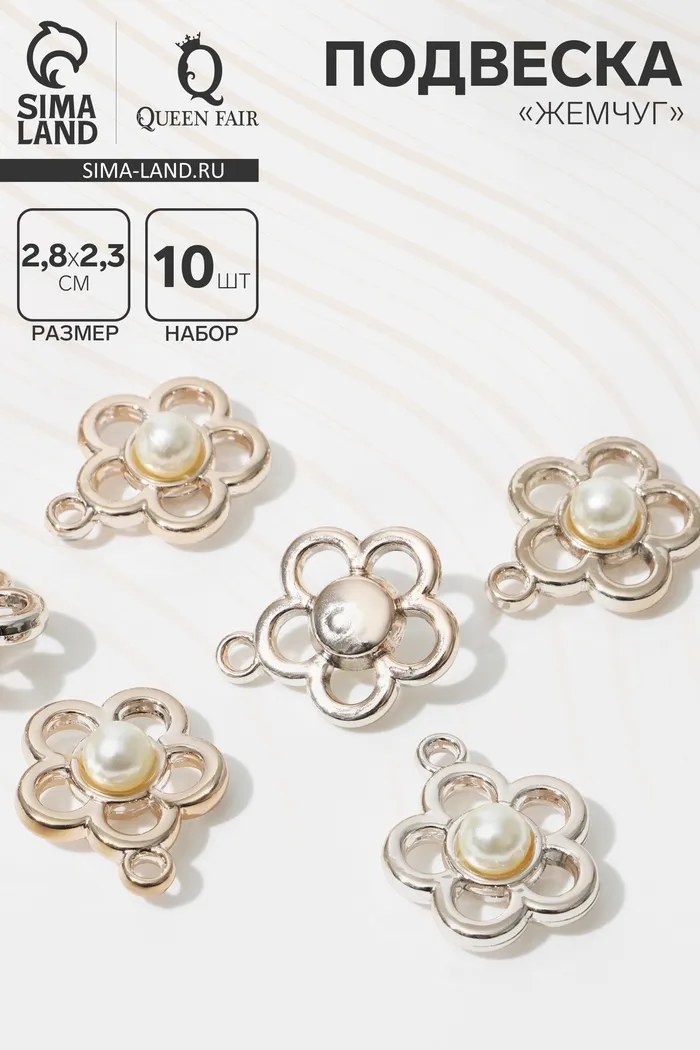 Подвеска "Жемчуг" цветок 2,8*2,3*0,7 см (набор 10 шт) — это стильный и элегантный элемент для вашего рукоделия. С размерами 2,8*2,3*0,7 см, эта подвеска в форме цветка станет ярким акцентом в любых украшениях, таких как ожерелья, браслеты, серьги и декоративные аксессуары.