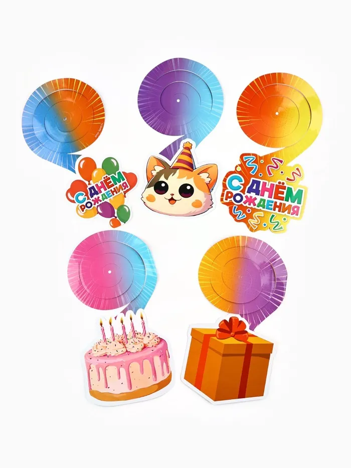 Подвески-спирали «С Днем Рождения», 5 шт, 16 х 30 см — Характеристики