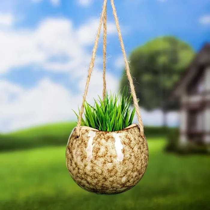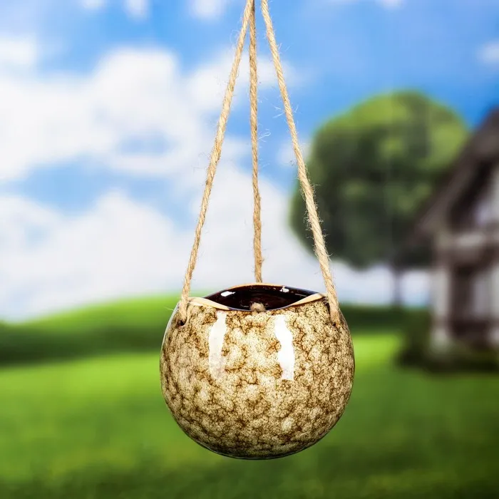 Подвесное кашпо для цветов «Круглое», 480 мл, 11×11×9 см, керамика, бежевое — Характеристики