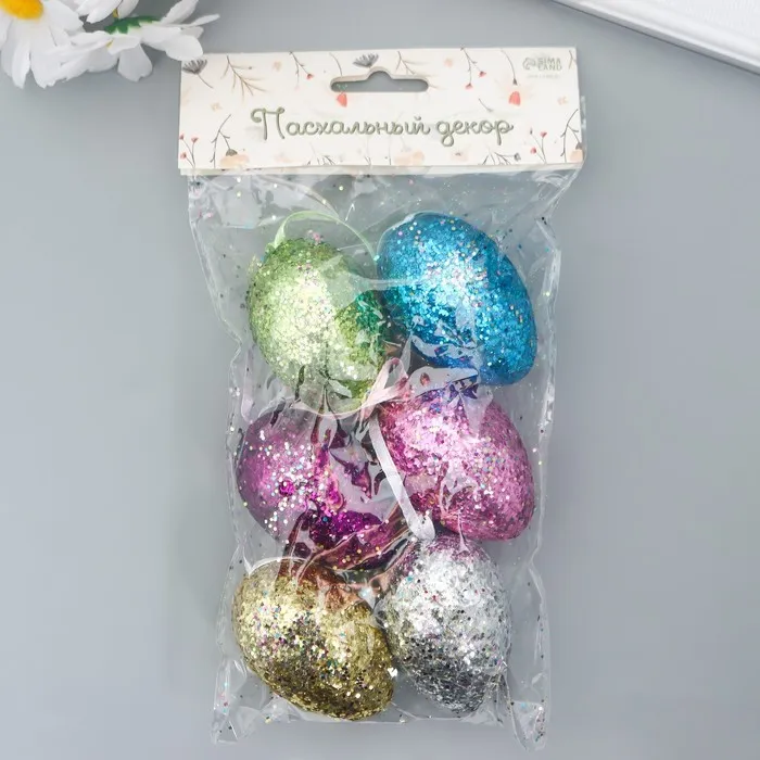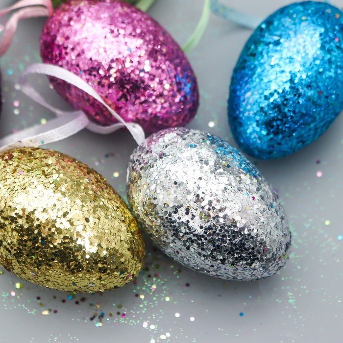 Подвесное украшение пасхальное «Яйцо: блёстки», набор 6 шт., разноцветные, 6×4×4 см — Характеристики
