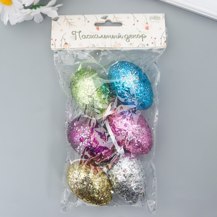 Подвесное украшение пасхальное «Яйцо: блёстки», набор 6 шт., разноцветные, 6×4×4 см