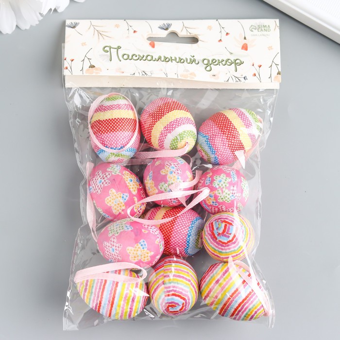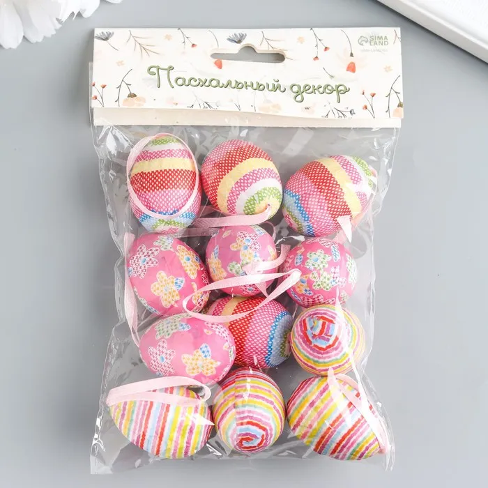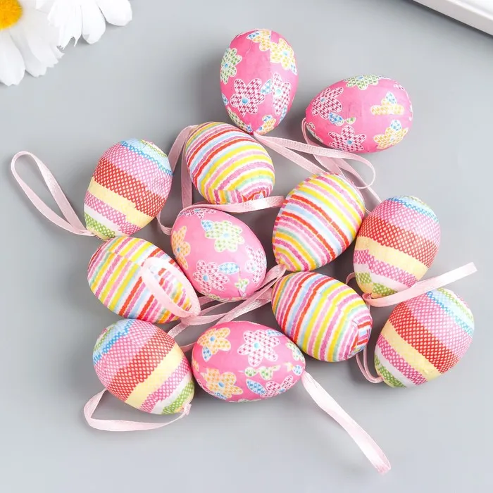 Подвесное украшение пасхальное «Яйцо: полосочки», набор 12 шт., яйцо 3×4 см