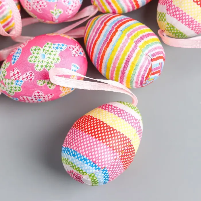 Подвесное украшение пасхальное «Яйцо: полосочки», набор 12 шт., яйцо 3×4 см — Характеристики