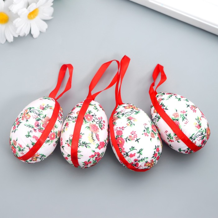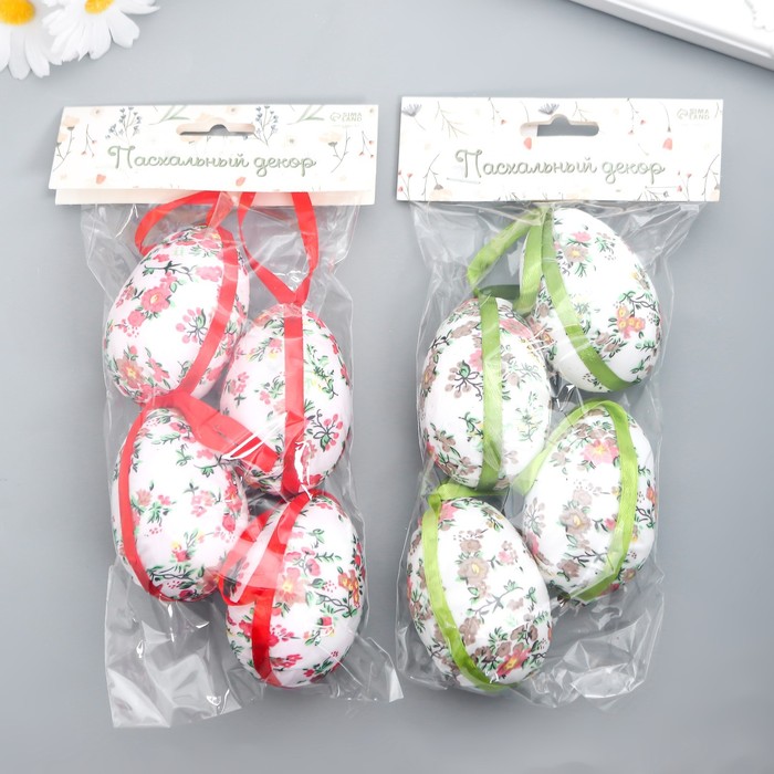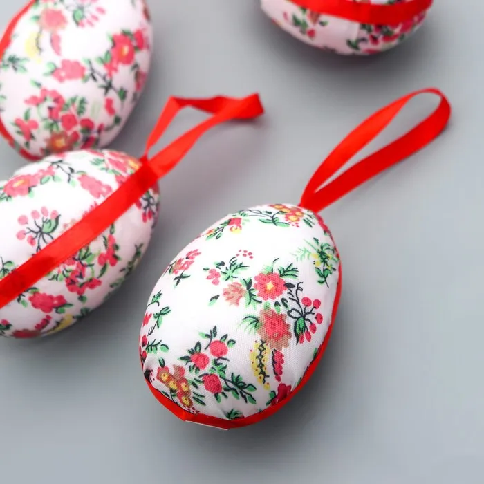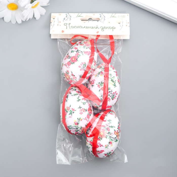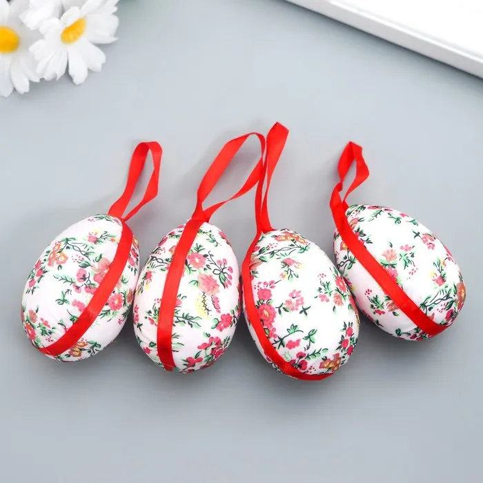 Подвесное украшение пасхальное «Яйцо с цветочным принтом», набор 4 шт., 7×5 см, МИКС — Характеристики