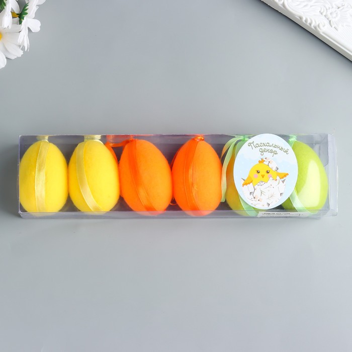 Подвесное украшение пасхальное «Яйцо с ворсом», набор 6 шт., разноцветные, 4×4×6 см