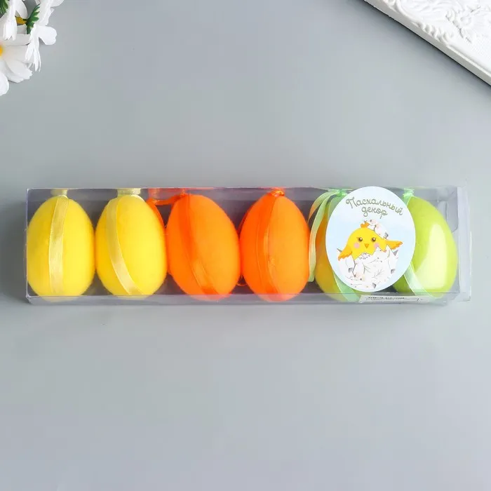 Подвесное украшение пасхальное «Яйцо с ворсом», набор 6 шт., разноцветные, 4×4×6 см — Характеристики