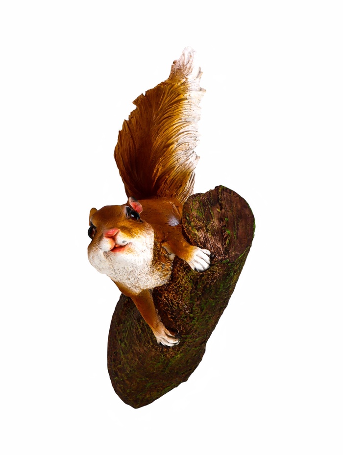 Белка на ветке из полистоуна — подвесная фигурка для сада, наполняющая пространство движением и теплом. Оранжевая белка в естественной позе создаёт живой и динамичный образ, который подходит для сада в любое время года.