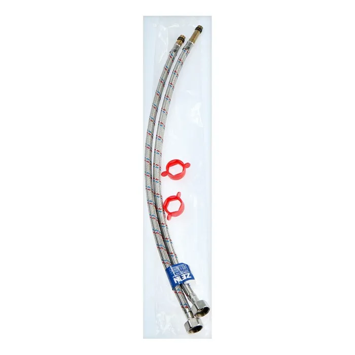 Подводка для смесителя ZEIN состоит из двух гибких трубок с гайкой 1/2" и штуцером М10, предназначенных для подключения смесителей к водопроводной системе.