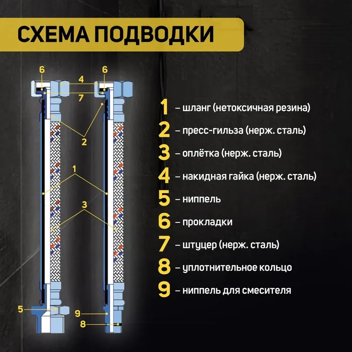 Гибкая подводка для воды ZEIN предназначена для удобного и надежного подключения сантехнического оборудования.