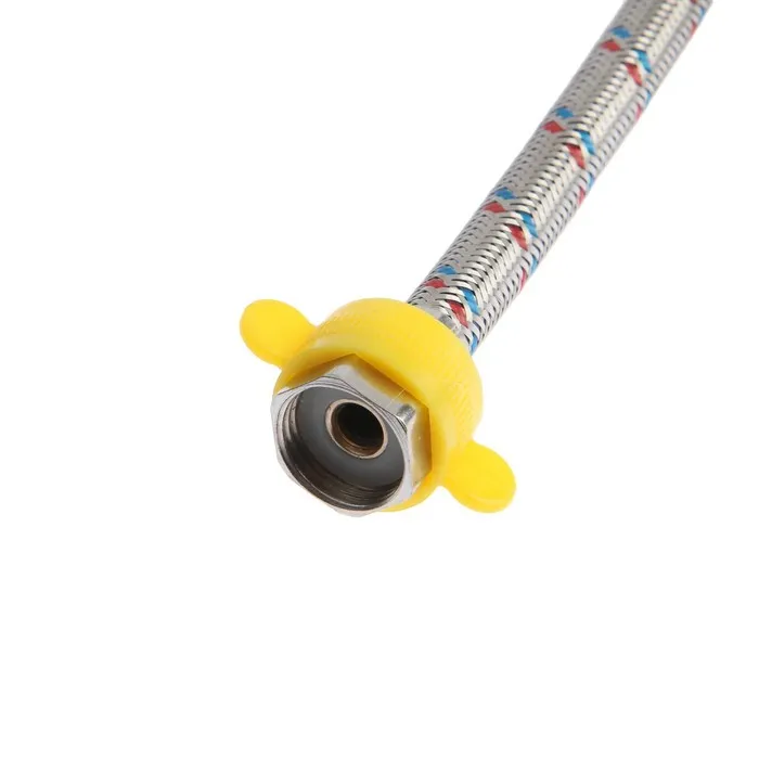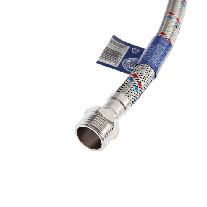 Один конец у подводки оснащен гайкой, а другой — штуцером, что обеспечивает универсальность в установке.