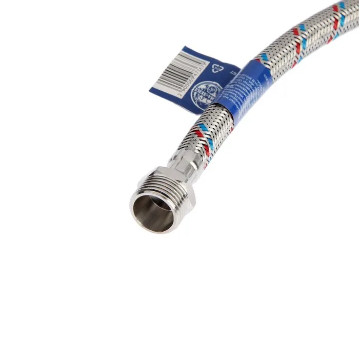 Гибкая подводка для воды ZEIN длиной 150 см, с диаметром 1/2", оснащена гайкой-штуцером для удобного подключения сантехнических устройств.