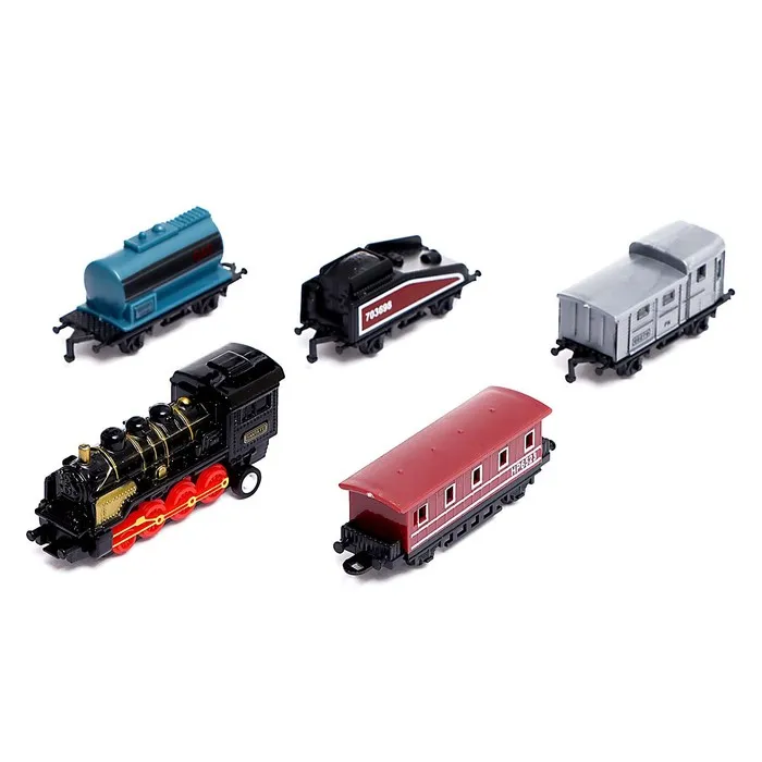 • Корпус поезда изготовлен из прочного металла, который не ломается и не царапается. Остальные элементы локомотива и вагоны выполнены из пластика.