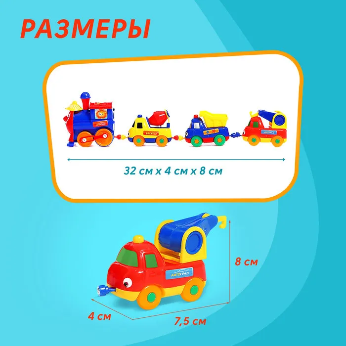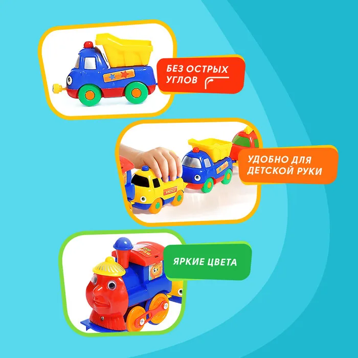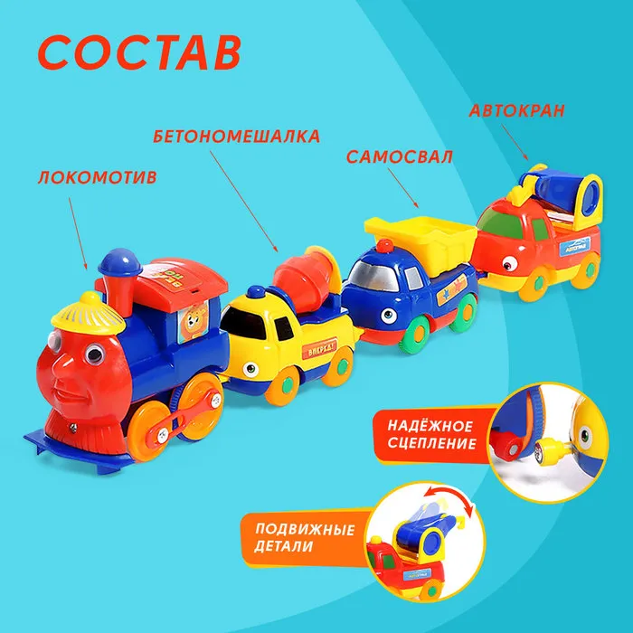 Поезд с машинками «Весёлый паровоз», набор 4 шт., магнитная сцепка, работает от батареек — Характеристики
