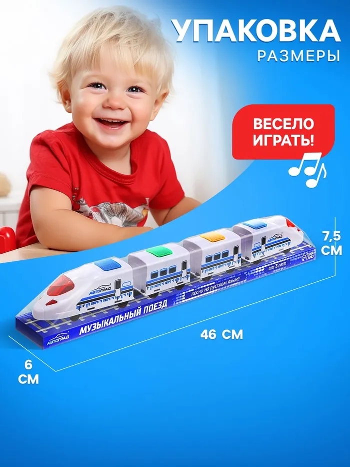 Красочный скоростной поезд увлечёт малыша в страну приключений. Состав мгновенно домчит ребёнка куда угодно, ведь чтобы перемещаться, вагонам не нужны рельсы!