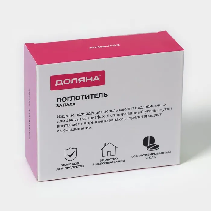 Компактный размер (10x8,5x4 см) позволяет легко разместить поглотитель на полке холодильника, не занимая много места. Он эффективно нейтрализует неприятные запахи, сохраняя продукты свежими дольше.
