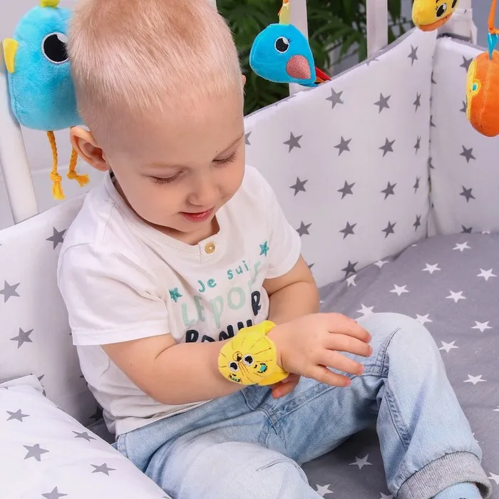 Яркие цвета и фактурные элементы мордашки животного обязательно привлекут карапуза. Малютка научится концентрировать внимание и фиксировать взгляд на движущемся предмете во время игры.