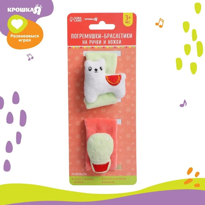 Погремушка - браслет Крошка Я «Лама», набор 2 шт., от 3 мес. — Характеристики
