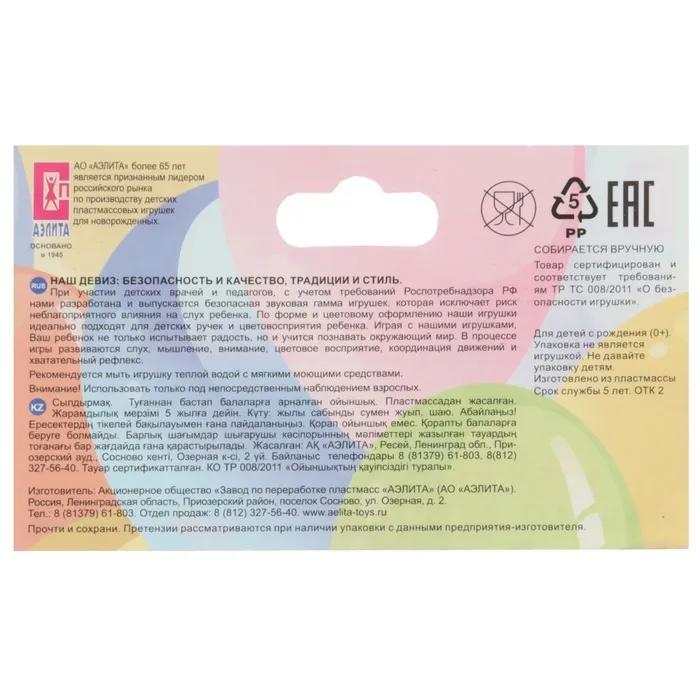 Погремушка «Букетик», МИКС, Аэлита — Характеристики