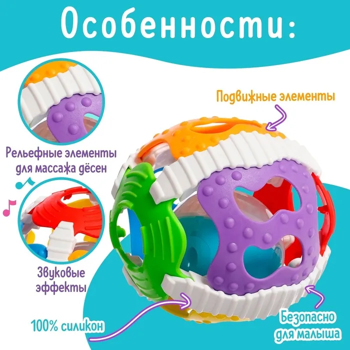 Погремушка детская «Весёлый мячик», свет, звук — Характеристики