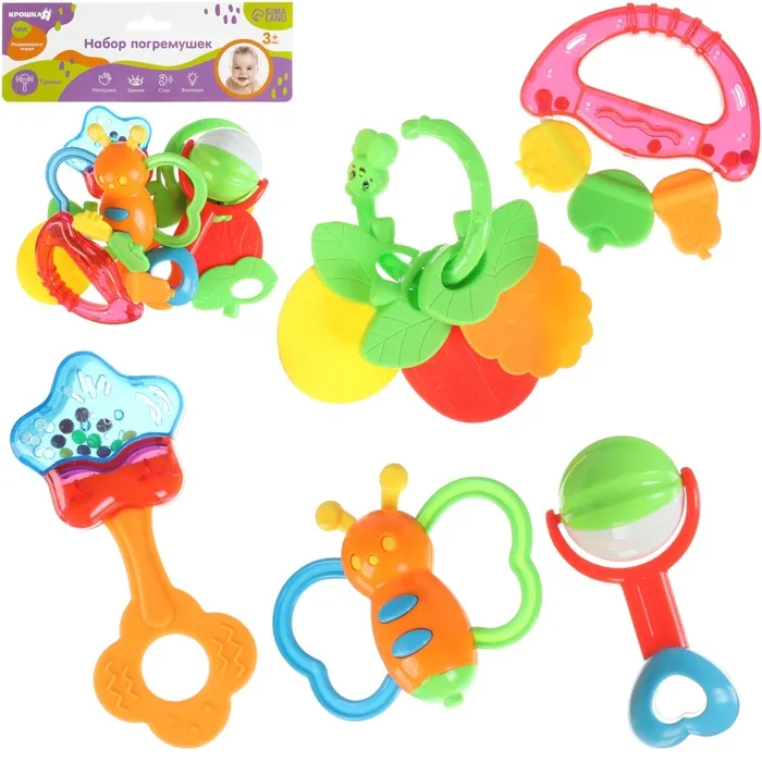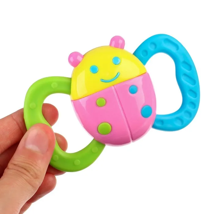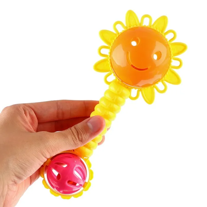 - Погремушка развивает остроту зрения и слуха, тактильную чувствительность и мелкую моторику.