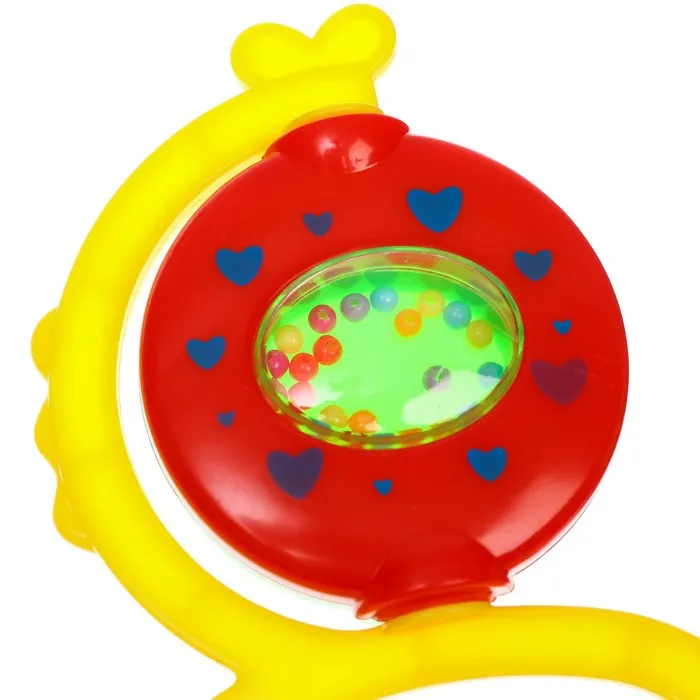 - Внутри погремушки находятся шарики. Они издают приятные звуки, это привлекает внимание малышей.