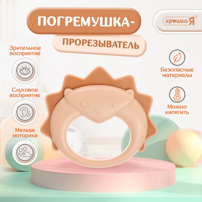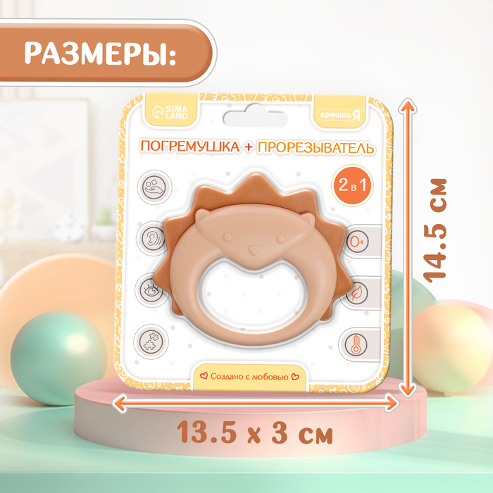 Погремушка «Ёжик», с прорезывателем для зубов, пищевой силикон — Характеристики