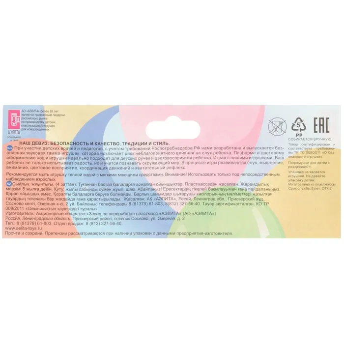Погремушка «Ладушки», 4 шт., МИКС, Аэлита — Характеристики