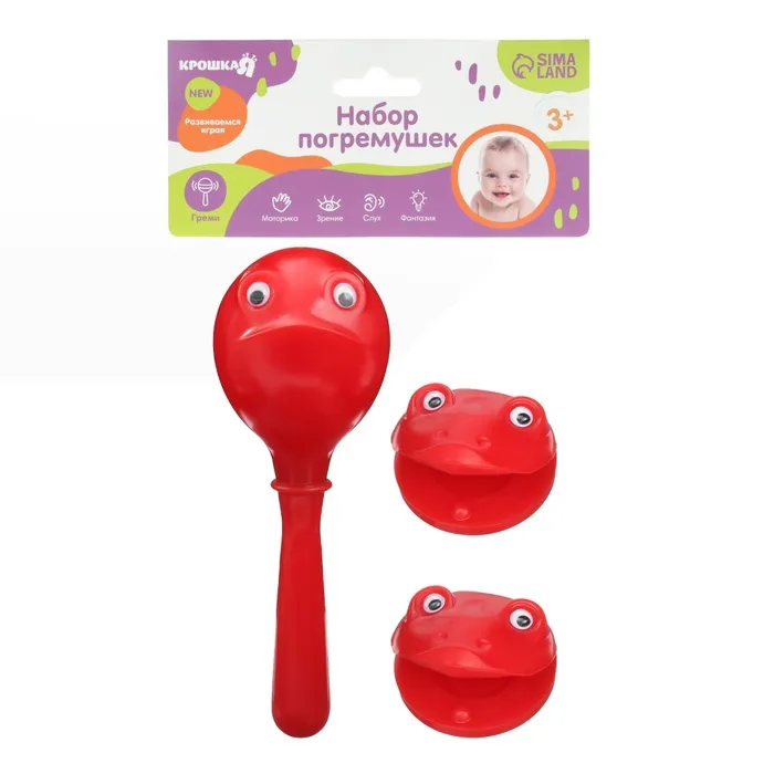 Погремушка «Лягушата», кастаньеты и перкуссионный маракас, 3 шт., красный — Характеристики