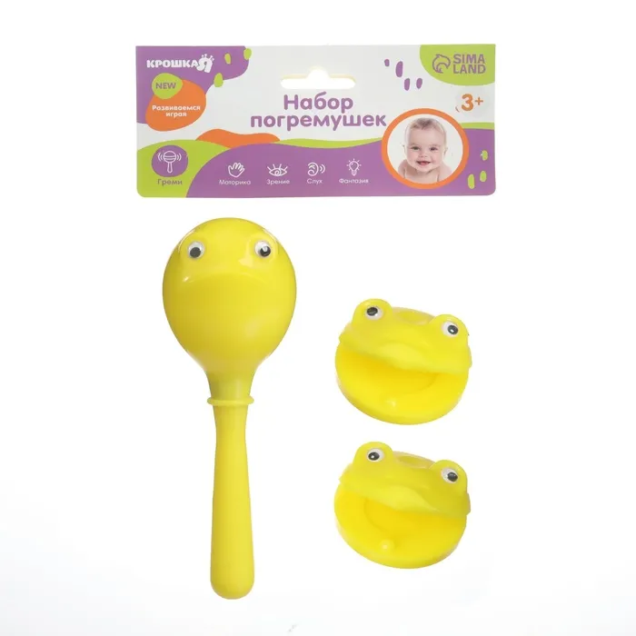 Погремушка «Лягушата», кастаньеты и перкуссионный маракас, 3 шт., желтый — Характеристики