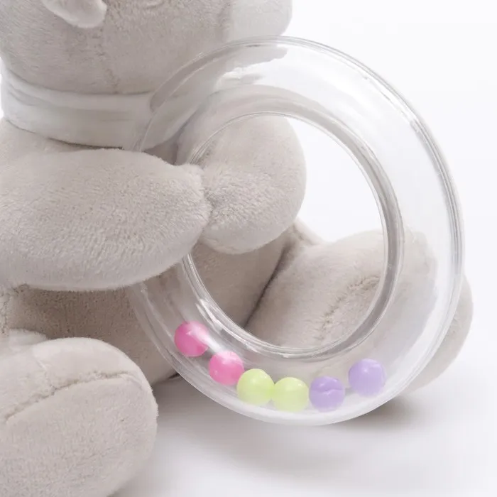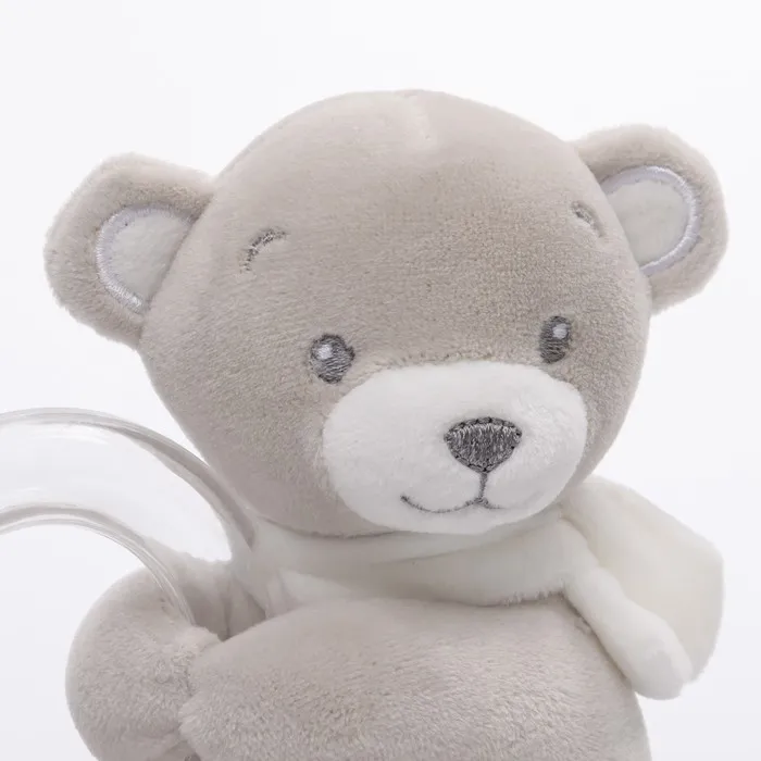 Фактурные элементы мордашки животного обязательно привлекут карапуза. Малютка научится концентрировать внимание и фиксировать взгляд на движущемся предмете во время игры.
