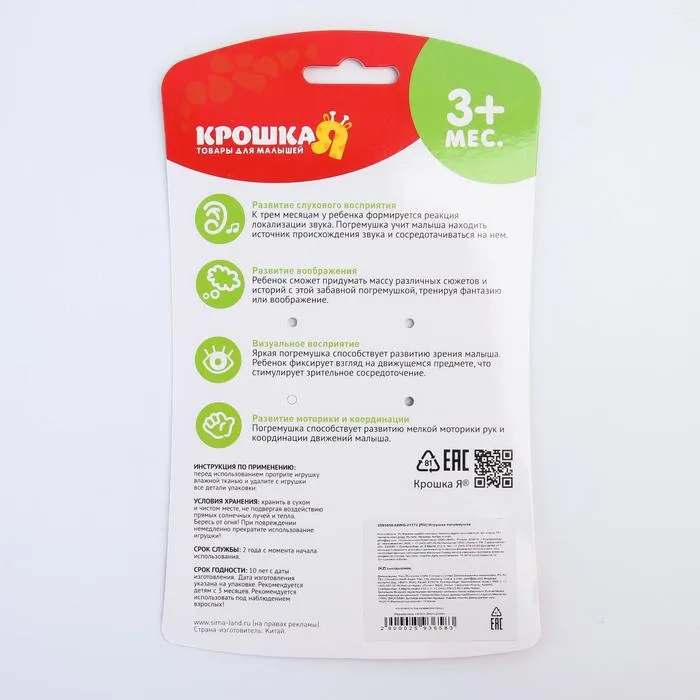 Погремушка мягкая «Малыши», с эластичными элементами, Крошка Я, МИКС — Характеристики