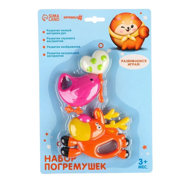 Погремушка «Олененок и Птичка», от 3 мес., набор 2 шт., Крошка Я — Характеристики