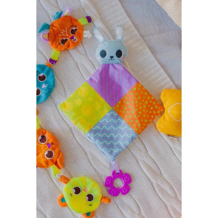 Мягкая игрушка шуршит и имеет красочные развивающие картинки, привлекающие внимание малыша. Развивает слуховое восприятие малыша, воображение, мелкую моторику,координацию движений и визуальное восприятие, а грызунок поможет в прорезывание первых зубов крохи.