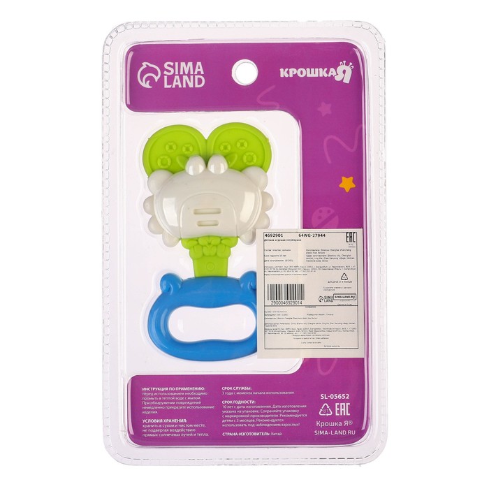 Погремушка «Радость малыша: Краб», с прорезывателем, цвет МИКС, Крошка Я — Характеристики
