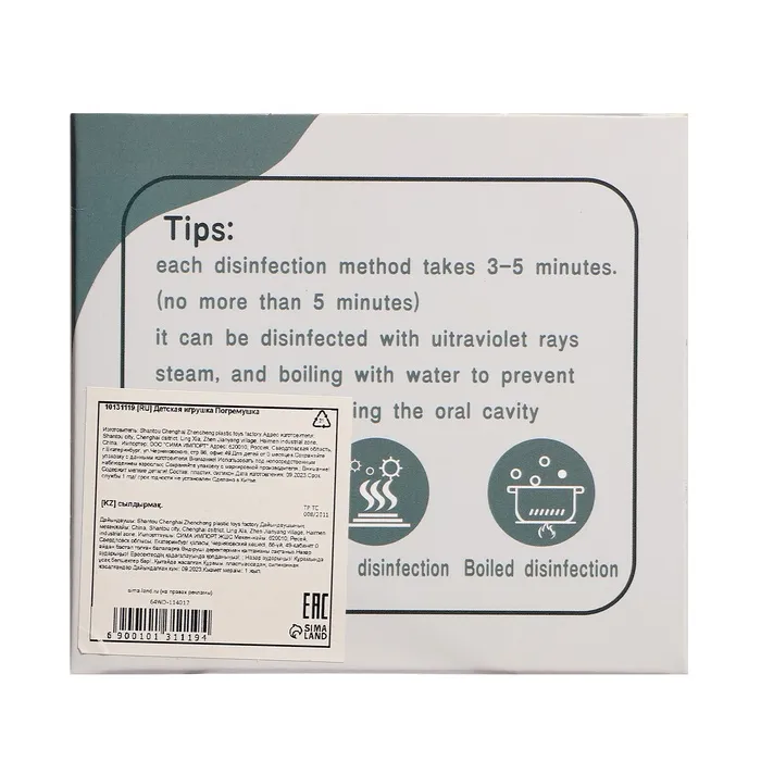 Перед игрой и после, промывайте игрушку под проточной водой с использованием мыла, или опустите на 2-3 минуты в кипящую воду. Не забудьте тщательно просушить изделие.