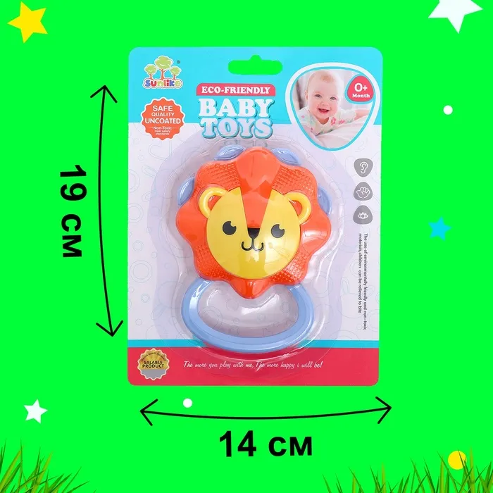 - Игрушка изготовлена из безопасных материалов — пищевого силикона и пластика. Она будет мягко массировать дёсны и облегчит боль при прорезывании зубов.