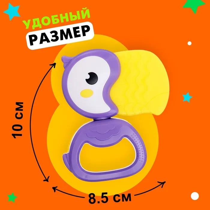 Погремушка с прорезывателем для зубов «Туканчик» разработана специально для малышей с рождения. Игрушка привлечёт внимание дизайном, яркими цветами, и надолго займёт малыша.