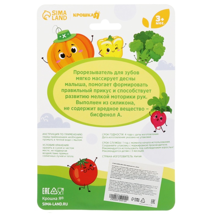 Погремушка с прорезывателем «Овощной МИКС, Крошка Я: Грибочек», цвет МИКС, Крошка Я — Характеристики