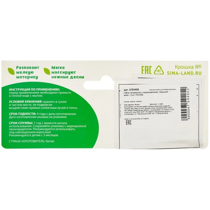Погремушка с прорезывателем «Овощной микс», от 3 мес., 2 шт. — Характеристики