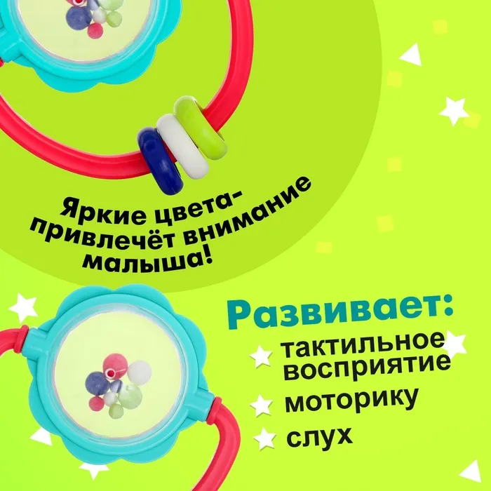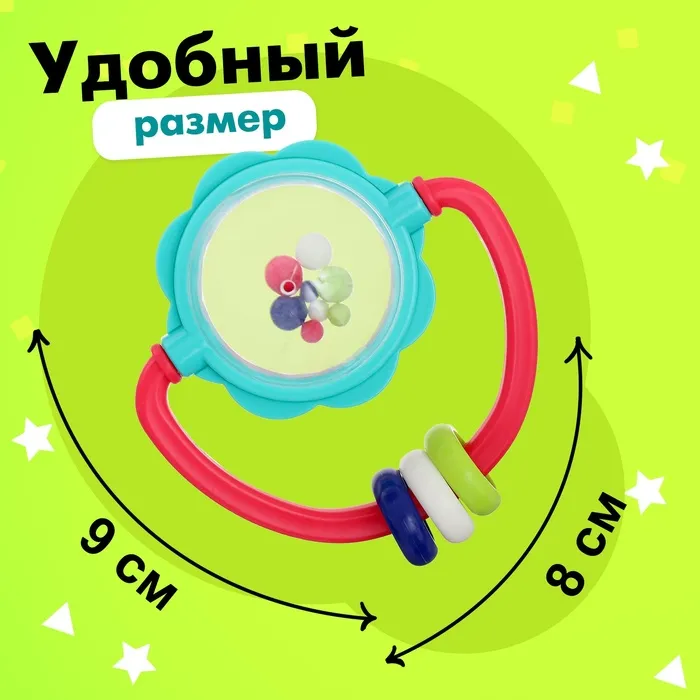 Погремушка «Шарики» разработана специально для малышей с рождения. Игрушка привлечёт внимание дизайном, яркими цветами, и надолго займёт малыша.