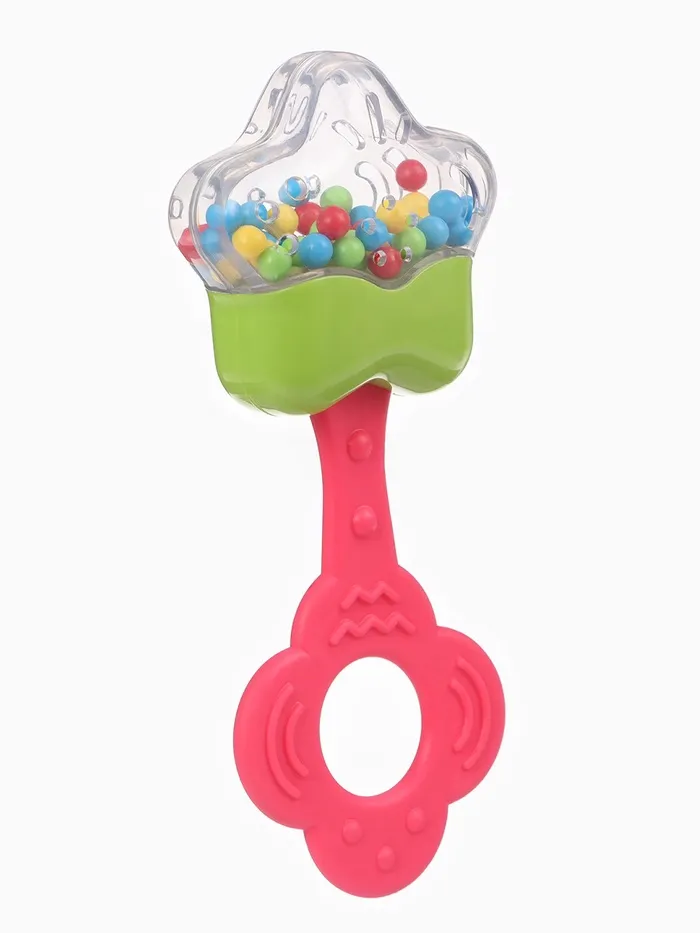 Погремушка с силиконовым прорезывателем поможет малышу справляться с режущимися зубками. Мягкий силикон без острых углов обеспечивает безопасность и комфорт для ребенка.