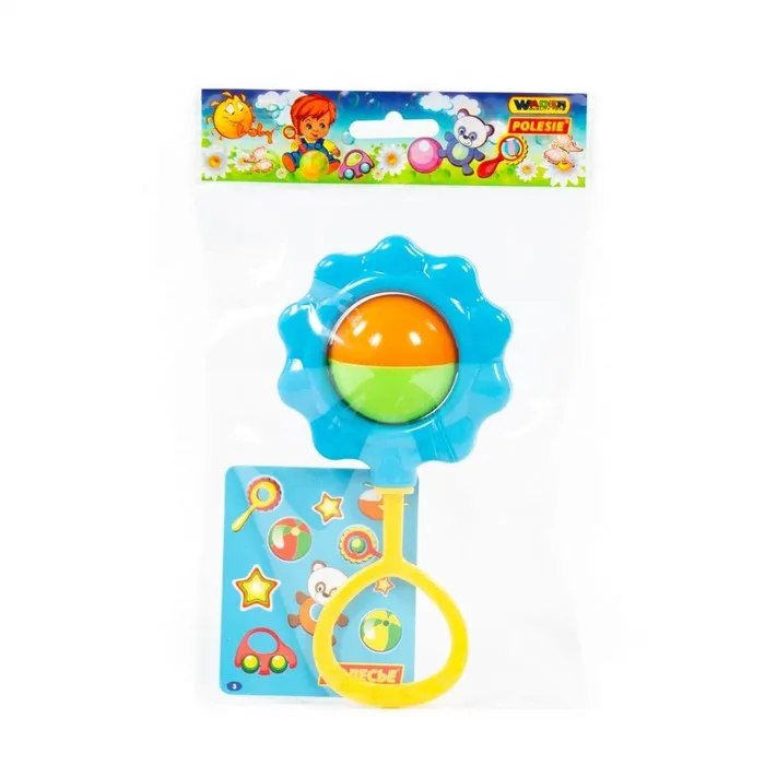 Погремушка — это первая игрушка малыша. Красочный предмет знакомит новорождённого с окружающим миром. Он развивает у ребёнка пространственное мышление, а также слуховое, зрительное и тактильное восприятие.