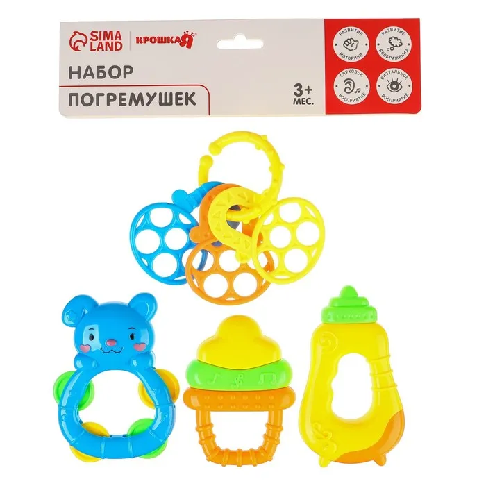 Погремушки «Яркое настроение», от 3 мес., 4 шт. — Характеристики
