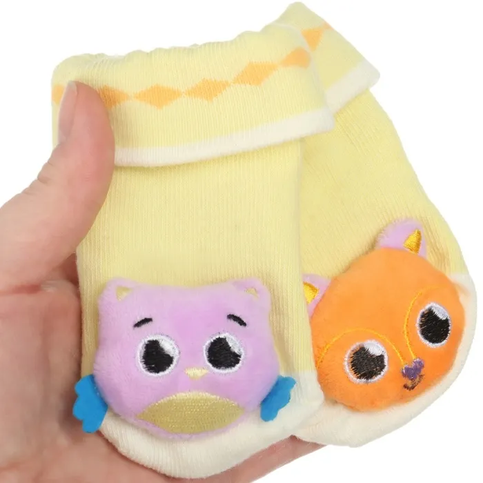 - Множество развлекательных возможностей: Наш набор включает в себя яркие и забавные браслетики и носочки-погремушки, которые захватят внимание вашего малыша. Они оснащены погремушками, которые издают звуки при движении, стимулируя развитие его слуховых и моторных навыков.