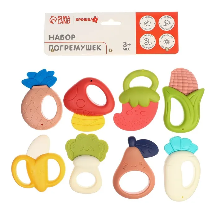 Погремушки - это не просто игрушки, это ключевой элемент в развитии малыша. Они помогают развивать мелкую моторику, зрительное и слуховое восприятие и улучшают координацию движений. В нашем наборе вы найдете разнообразные погремушки с силиконовыми прорезывателями, которые помогут малышу справляться с режущимися зубками. Мягкий силикон без острых углов обеспечивает безопасность и комфорт для ребенка.