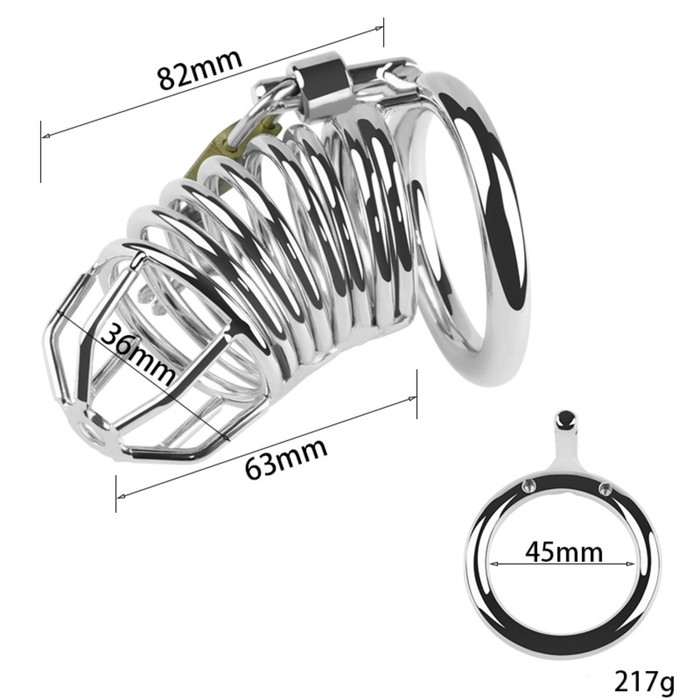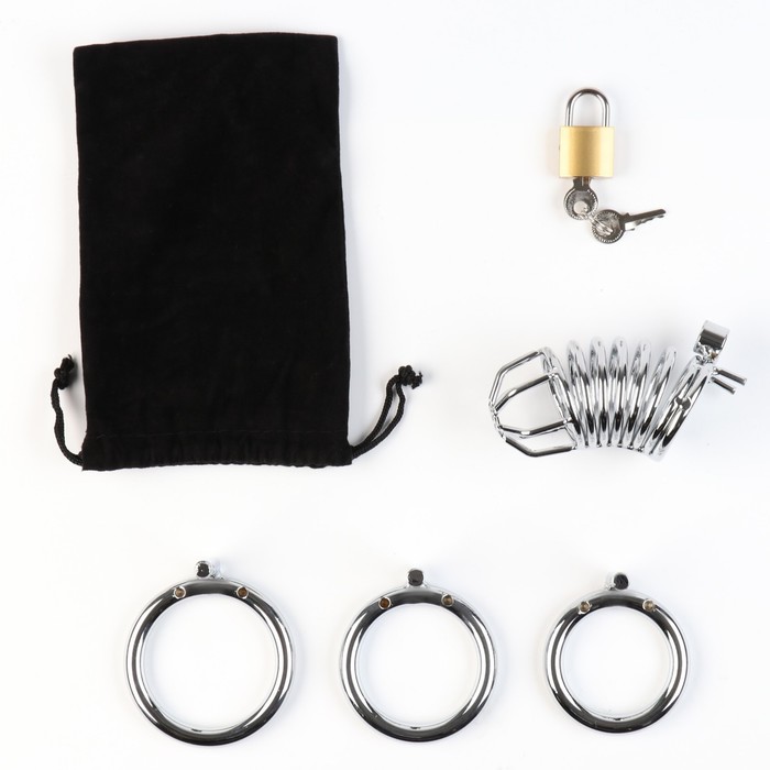 Пояс верности «Клетка целомудрия № 3» , кольца D = 4; 4.5; 5 см, замок, ключ, металл — Характеристики