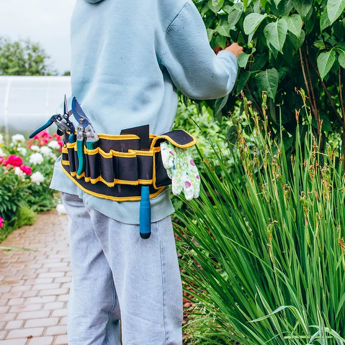 С поясной сумкой легко поддерживать порядок среди инструментов. Теперь вы сможете быстро найти нужный аксессуар, не отвлекаясь от работы, что делает процесс садоводства более продуктивным и приятным.