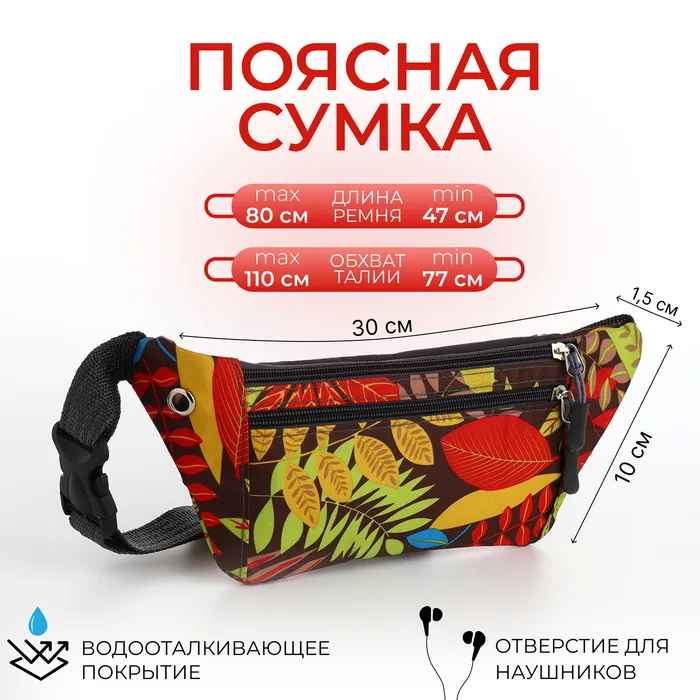 Поясная сумка на молнии, 2 наружных кармана, цвет разноцветный — Характеристики