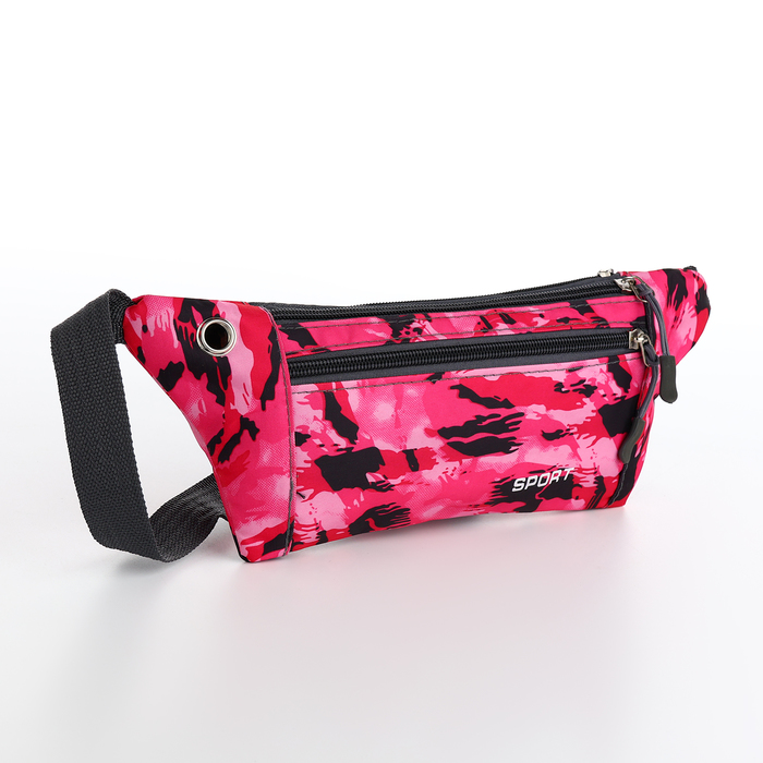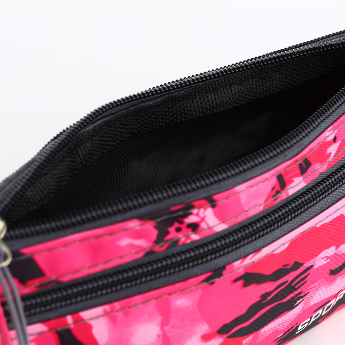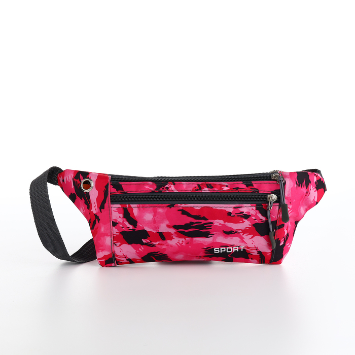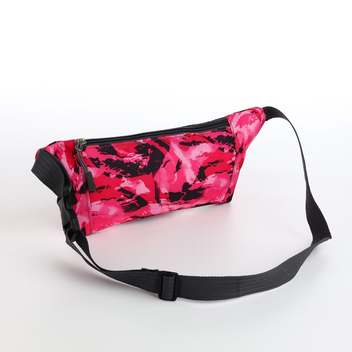 Поясная сумка на молнии, 2 наружных кармана, цвет розовый/камуфляж — Характеристики